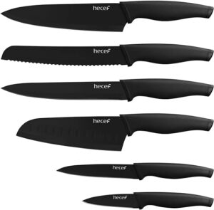 hecef 6 Piezas Cuchillos cocina - Acero Inoxidable Negro