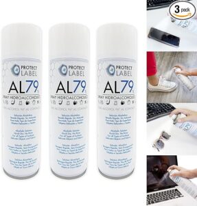 Por otro lado, el Protect Label Hidroalcohol Spray contiene un 79% de alcohol, lo cual lo convierte en una opción excelente para la desinfección rápida de manos y superficies. Su formato en aerosol facilita su aplicación y asegura una cobertura efectiva, siendo especialmente útil en situaciones donde se necesita una desinfección inmediata sin la necesidad de agua y jabón.
