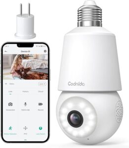 Por otro lado, la Codnida Cámara de Bombilla ofrece una propuesta única con su diseño discreto que integra una cámara de alta definición en una bombilla estándar, tanto para interiores como exteriores.