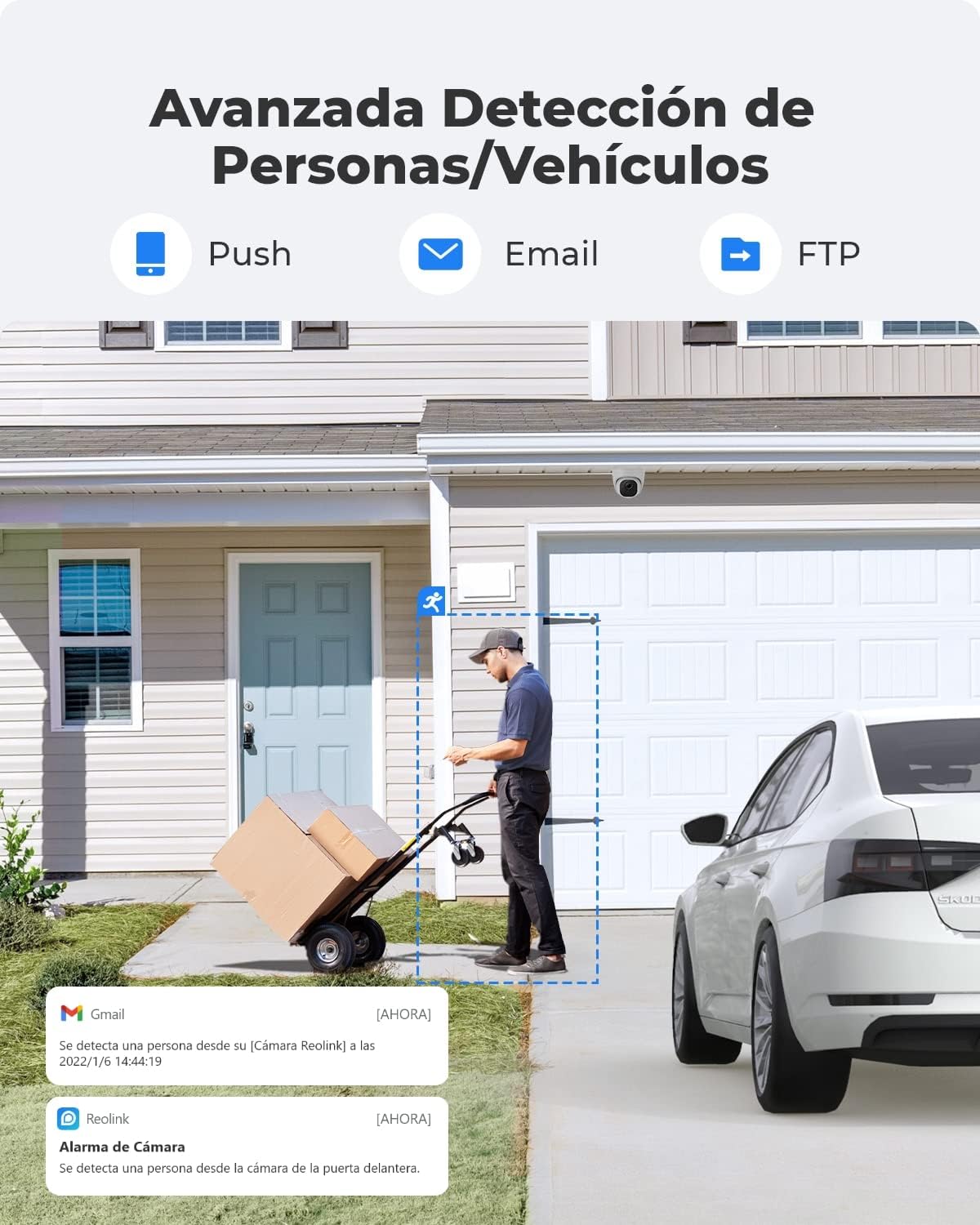 Una de las características más sobresalientes de la Reolink 5MP PoE es su avanzada capacidad de detección de personas y vehículos, lo que permite al usuario filtrar las alertas de movimiento según el tipo específico de actividad detectada. Esto no solo ayuda a reducir las falsas alarmas, sino que también proporciona una vigilancia más precisa y eficiente.