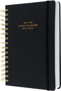 • Ventajas: Diseño elegante y moderno con una estética en negro, ideal para estudiantes y profesionales. Mayor espacio para notas con un tamaño A5. Alta calidad de materiales y encuadernación robusta.