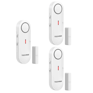 Alarma TechRise ofrece una instalación rápida y sin herramientas, además de un diseño compacto que se adapta fácilmente al estilo del hogar. Tiene un control de volumen que supera los 98 dB, garantizando alerta inmediata.