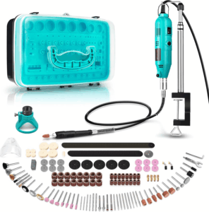 Por su parte, la Amoladora GOXAWEE es una excelente opción para aficionados al bricolaje y creadores de manualidades. Su gran variedad de accesorios y diseño portátil la hacen perfecta para proyectos creativos, joyería, modelismo y trabajos delicados. Su estuche facilita el transporte y la organización, ideal para espacios reducidos.