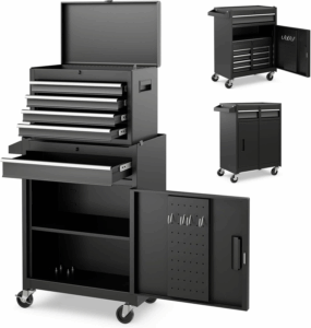 Por otro lado, el Carro de Herramientas GOPLUS es ideal para profesionales o aficionados que requieren una solución modular y versátil, con amplio espacio y posibilidad de configurar el almacenamiento según el tipo y tamaño de sus herramientas. Su diseño 2 en 1 ofrece flexibilidad para separar o combinar el armario y el carro según la tarea.