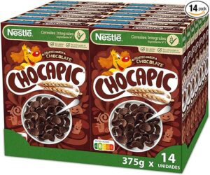 El Cereales Nestlé Chocapic 375 g también está ampliamente disponible, tanto en tiendas físicas como en plataformas de venta online, lo que facilita su adquisición a quienes prefieren el sabor a chocolate.