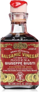 Historical Collection – Balsamic Vinegar of Modena IGP – 3 gold medals «Riccardo Giusti»: Ideal para aderezar ensaladas gourmet, marinar carnes o como acompañamiento de platos de queso.