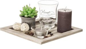 - Incluye plato, portavelas, velas y piedras decorativas.