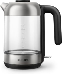 Si estás buscando un hervidor de agua eficiente, elegante y práctico, los hervidores de agua de vidrio son una excelente opción. Estos aparatos no solo te permiten hervir agua rápidamente, sino que también añaden un toque moderno y sofisticado a tu cocina. En esta comparativa, analizamos dos de los modelos más populares: el Philips Hervidor de Agua y el Cecotec Hervidor Eléctrico de Agua, ambos con capacidad de 1,7 litros, base giratoria de 360º y diseño en vidrio. Ambos productos cuentan con características de seguridad avanzadas y una estética que atraerá a quienes buscan funcionalidad y estilo.