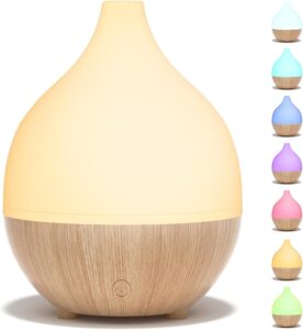 - Ventajas: Compacto y portátil, 8 colores de luces, incluye una luz amarilla cálida, botón todo en uno para facilidad de uso, apagado automático cuando el agua se acaba, adecuado para espacios más pequeños o para viajes.