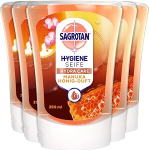 Característica Sagrotan No-Touch Refill Almendra Jean & Len Jabón de manos de romero y jengibre
