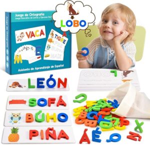- Número de piezas: 30 tarjetas de palabras, 64 bloques de letras