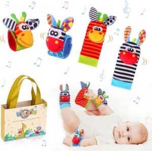 • Incluye 2 sonajeros de muñeca y 2 calcetines