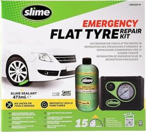 Este kit incluye una bomba de aire y un sellador, permitiendo reparar el neumático en solo 15 minutos sin necesidad de herramientas adicionales.