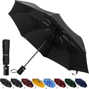 Ventajas: Este paraguas destaca por su diseño compacto y resistente. Su estructura de fibra de vidrio es ideal para resistir vientos fuertes, mientras que su sistema automático de apertura y cierre lo hace muy fácil de usar con una sola mano. Además, es muy práctico para llevar en mochilas y bolsos debido a su tamaño reducido.