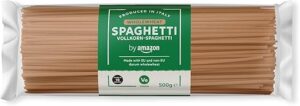 by Amazon Spaghetti Integral: Se trata de una pasta integral, rica en fibra y más saludable que la opción anterior. Su elaboración en Italia garantiza un proceso de calidad. No obstante, su tiempo de cocción es mayor y requiere preparación adicional.