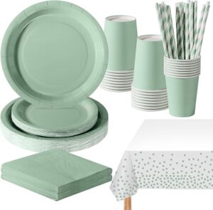 Por otro lado, la vajilla de PYAILI, con su diseño verde salvia, también está fácilmente disponible y es muy apreciada para fiestas de gran escala.