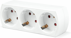 - Convierte una toma de corriente en tres tomas Schuko con toma de tierra.