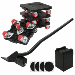 Este conjunto ofrece un sistema más completo: incluye cuatro plataformas de cinco ruedas con TPE giratorio 360°, un elevador de muebles, sistema de ajuste de altura y almohadillas antideslizantes. Su diseño busca garantizar un transporte estable, silencioso y sin daños en el suelo, ideal para mudanzas o reubicaciones frecuentes de muebles pesados.