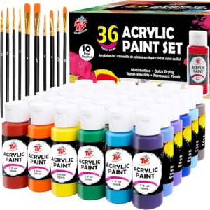 • Ventajas: Ofrece 36 colores, secado rápido, y es ideal para una variedad de proyectos, tanto profesionales como de bricolaje. Además, incluye pinceles profesionales y espátulas para técnicas diversas.