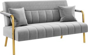 Yaheetech Sofá de Tela de Terciopelo: Diseño elegante, compacto y fácil de limpiar, pero su capacidad es limitada a dos plazas.