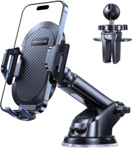 Si necesitas más versatilidad, como la posibilidad de instalar el soporte en varias ubicaciones del coche, el Miracase Soporte Móvil Coche es una opción recomendada. Su potente ventosa y el brazo telescópico permiten adaptarse a diversas situaciones.