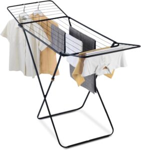 Ventajas: Gran capacidad para hasta 20 metros de ropa, estructura metálica resistente, plegable y ligera, diseño moderno en color negro que aporta elegancia, y montaje sencillo.
