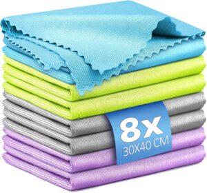 - Microfibra de trenzado plano, ideal para eliminar polvo, manchas de agua y huellas.