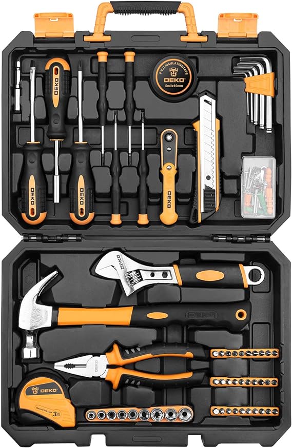 - Juego de herramientas básicas que incluye 100 piezas, adecuadas para una variedad de tareas de bricolaje y reparación.